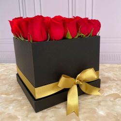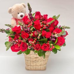 Sentimientos: Rosas rojas románticas, orquídeas exóticas y plantas decorativas.